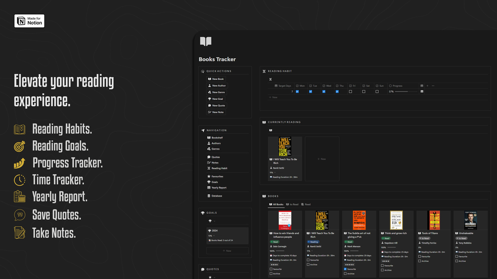 ⚙️ Built for Functionality: Experience a template designed with functionality in mind. Every feature is crafted to enhance your reading journey and provide a seamless tracking experience.