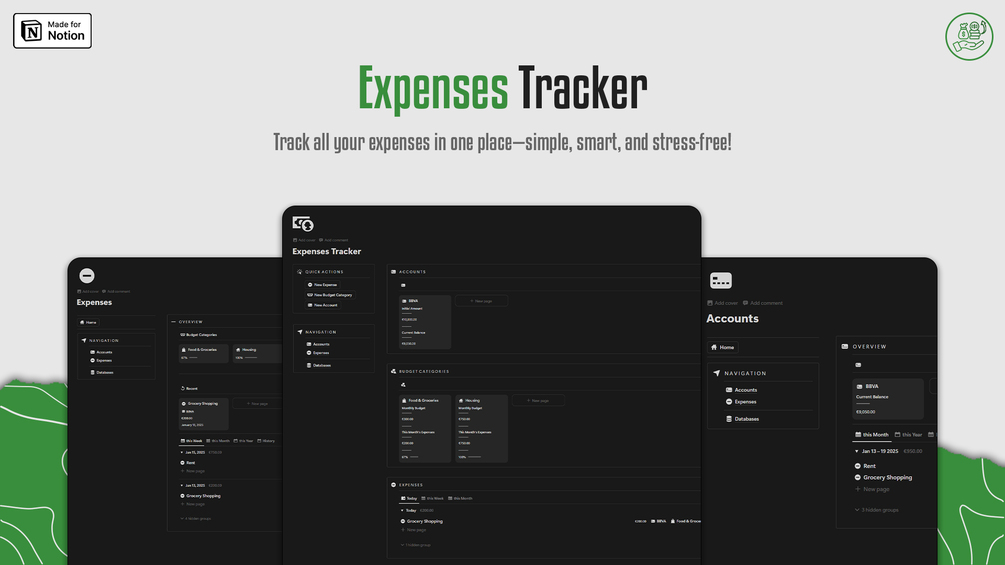 Simplify your budgeting and spending habits with our Expenses Tracker template for Notion!