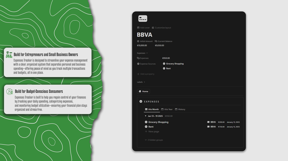 Simplify your budgeting and spending habits with our Expenses Tracker template for Notion!
