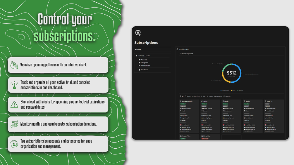 - For Budget-Conscious Consumers, they take back control of their finances with ease. By tracking their monthly and yearly costs, they avoid unexpected renewals and stay ahead of upcoming payments, all while keeping their budget organized and stress-free.